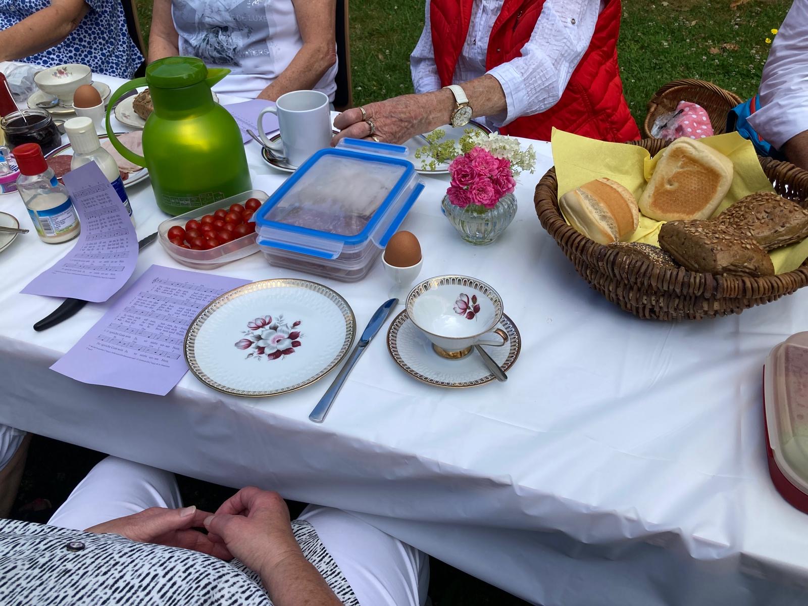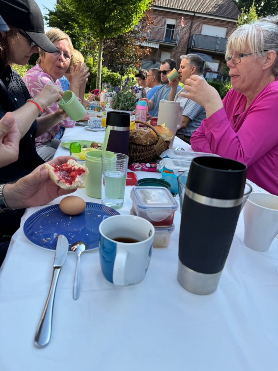 Nach einem Impuls von Pastoralreferentin Verena Kristau und der musikalischen Unterstützung von Kerstin Riegelmeyer wurde in Gemeinschaft gefrühstückt. Hierzu war eine lange Tafel liebevoll mit Blumen und Kerzen dekoriert. Die leckeren Brötchen und der Kaffee wurden vom Förderverein spendiert. Der Vormittag endete mit einem gemütlichen Beisammensein.