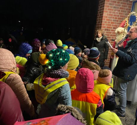 Bei angebotenem Glühwein und Kinderpunsch von der OGS wurden gemeinsam Nikolauslieder gesungen und der Geschichte des heiligen Mannes gelauscht. Einige Grundschulkinder hatten für den hohen Besuch sogar einige Lieder einstudiert. Und so schallte „Sei gegrüßt lieber Nikolaus“ und „Applaus für den Nikolaus“ über den winterlichen Appelhülsener Schulhof. Ehrfürchtig bedankten sich auch einige mutige Kinder persönlich beim Nikolaus für Ihre Geschenke, der gemeinsam mit den Organisatoren dann gerne die Zuckerbrezel an alle Anwesenden verteilte.