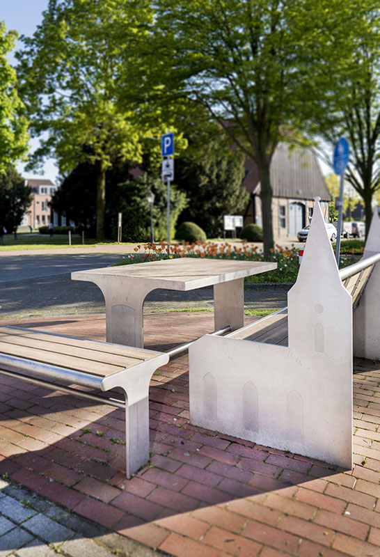 Im September 2018 kann die barrierefreie Sitzgruppe feierlich eröffnet werden. Diese ist auf Initiative des Fördervereins St. Mariä Himmelfahrt von Schülern der Metall-Oberstufe des Richard-von-Weizäcker-Berufskollegs und mit Hilfe vieler Sponsoren und ehrenamtlichen Helfern auf einem neu gestalteten Platz in der Nähe der Kirche errichtet worden. Die Bankgruppe lädt auswärtige Bürger zum Verweilen ein und verwirklicht die Idee, einen Platz für Kommunikation zu schaffen. Neben der Sitzgruppe verschafft eine kleine Metalltafel einen knappen Überblick über die Geschichte des Dorfes.