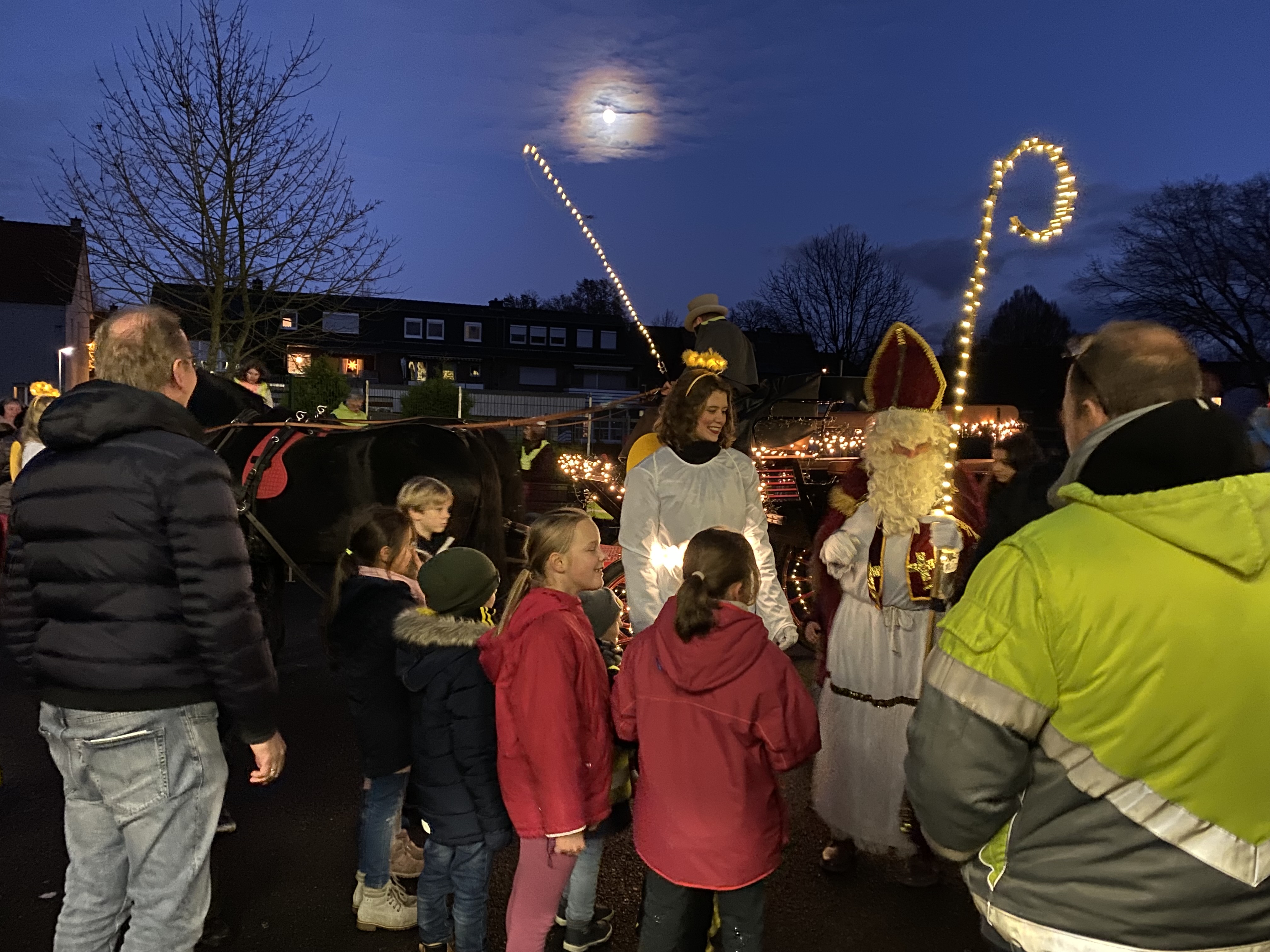 Zum Abschluss freuen sich kleine wie große Besucher über die vom Bürgerschützenverein gespendeten Zuckerbrezel. Kinderpunsch steuert der Förderverein der Grundschule bei. Der Förderverein St. Mariä Himmelfahrt freut sich, den Appelhülsenern mit dem Nikolausauftritt eine große Freude bereitet zu haben.